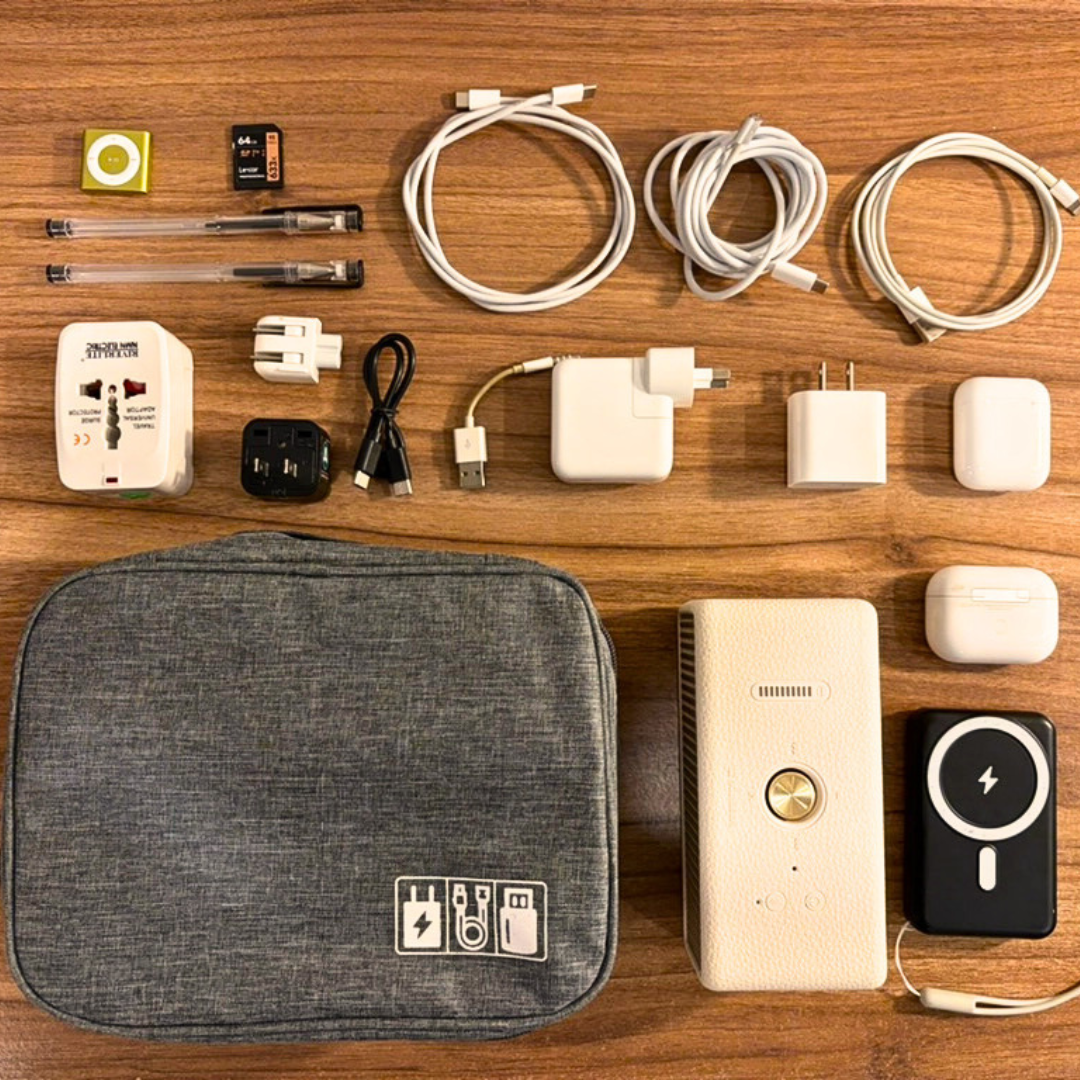 This portable tech organizer bag is designed for modern travellers and digital creators. With multiple compartments, it neatly stores your charging cables, power banks, adapters, SD cards, earphones, and more — all tangle-free and easy to find.